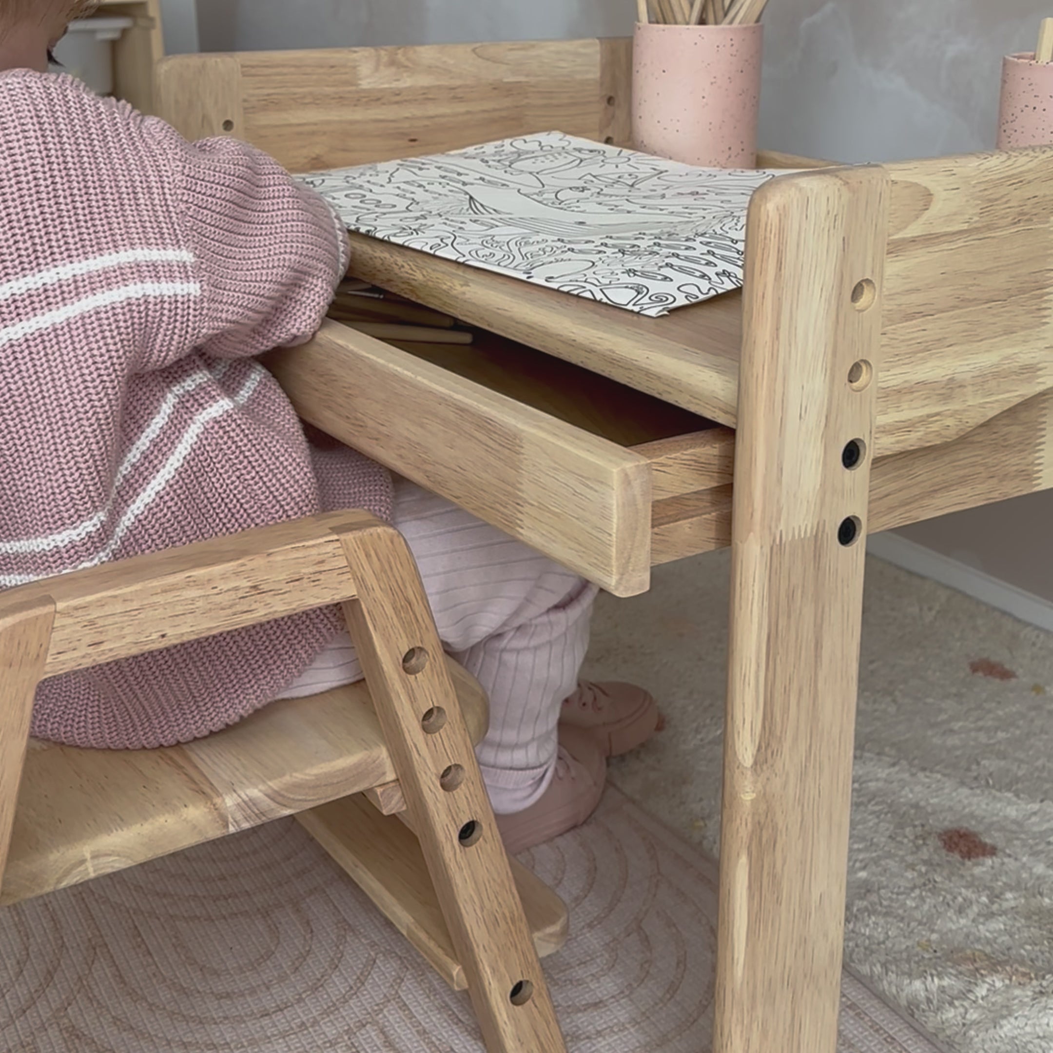 My Duckling KAYA Kids Adjustable Table and Chair Set is uniquely designed with built-in platform heights, adapting to your children as they grow.