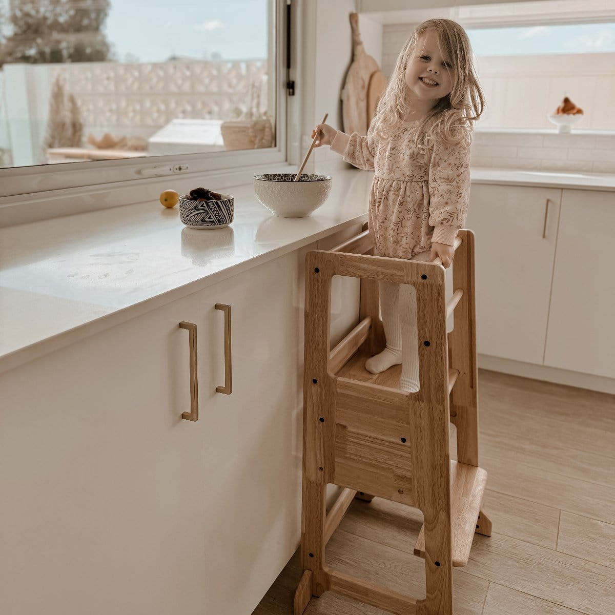 Our Learning Tower is perfectly designed for every family. It encourages your kids to play, learn and assist you in the kitchen and keep them busy and safe by your side.