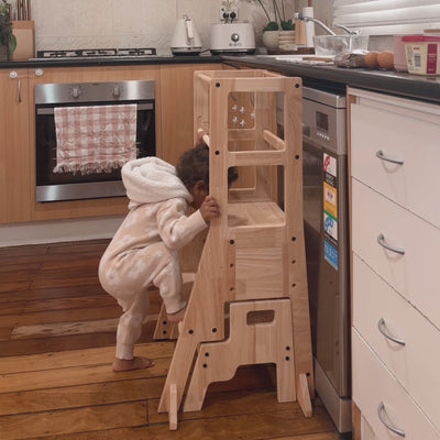 Our carefully handcrafted solid wood learning towers are crafted from 18mm thick rubber wood, with the highest quality material available and your children's safety in mind.